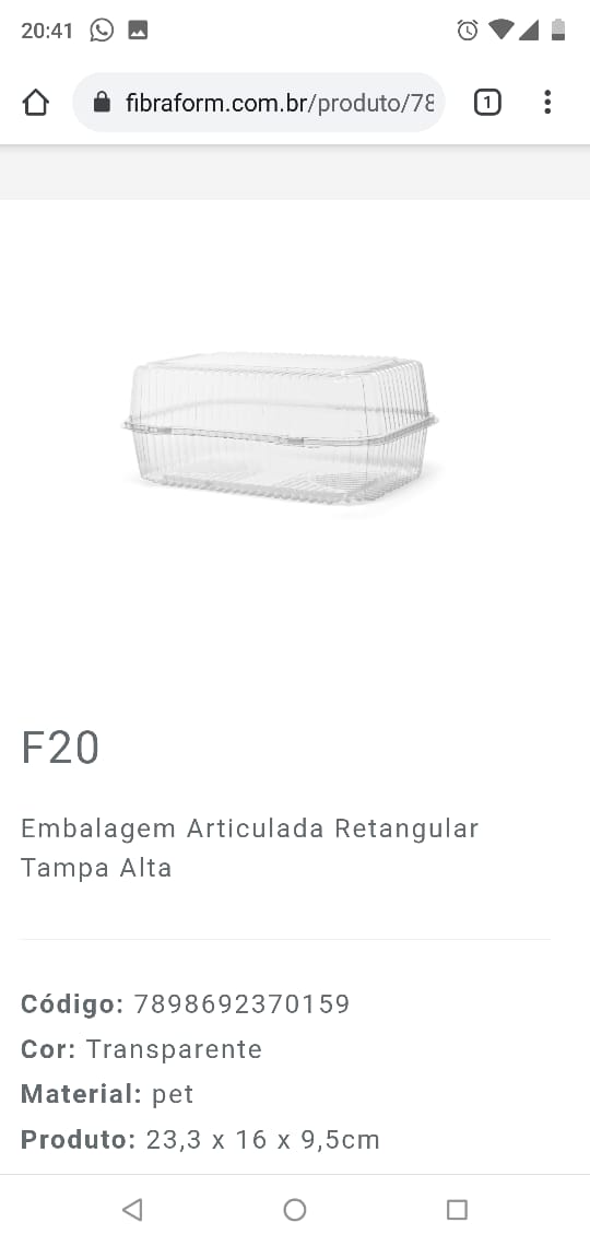 Embalagem Articulada Retangular Tampa Alta Transparente