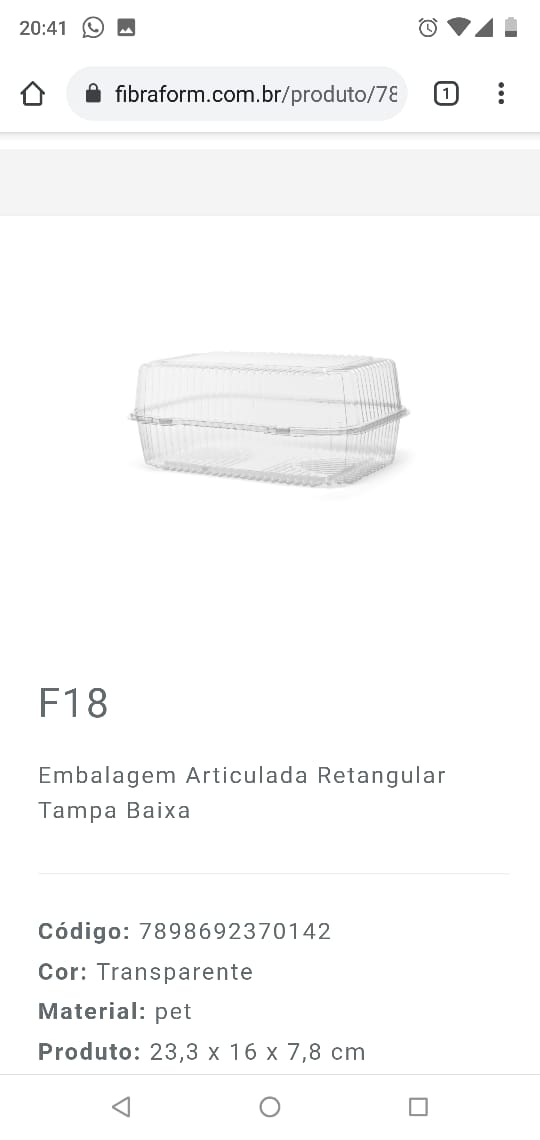 Embalagem Articulada Retangular Tampa Baixa Transparente
